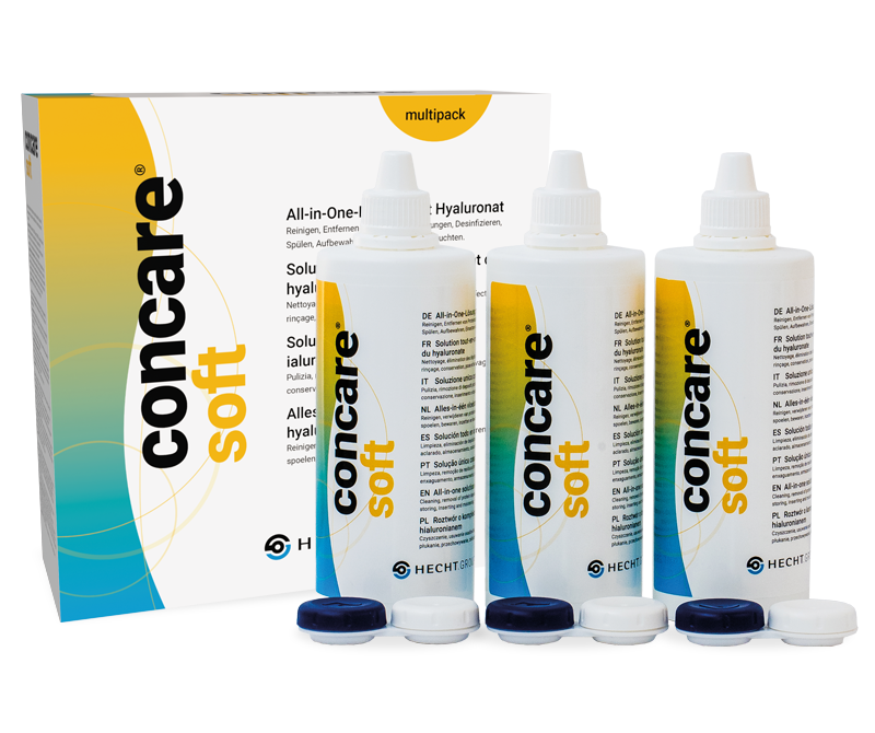 Mit der concare®-Familie präsentiert HECHT Contactlinsen ein sorgfältig zusammengestelltes Sortiment hochwertiger Produkte, das alle wichtigen Anforderungen der Kontaktlinsenpflege abdeckt. Die vielseitige Produktlinie bietet optimalen Schutz, zuverlässige Reinigung und höchsten Tragekomfort – abgestimmt auf die Bedürfnisse von Trägern weicher und formstabiler Kontaktlinsen.